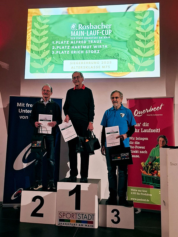 Viele Wege führen nach Rom. Aber auch viele Wege führten am 30. Januar 2026 zum Römer in Frankfurt. Gelegen im Herzen der Stadt, dort wo der OB den Takt vorgibt (ohne jedoch Musiker zu sein). An diesem Tag fand keine Wahlveranstaltung oder ein Empfang im Kaisersaal statt, sondern die Siegerehrung des Main-Lauf-Cups 2025 in den Römerhallen, gemütlich wie eh und je. Seit über 15 Jahren trifft sich dort immer am letzten Freitag des Monats Januar die Laufjugend aus Frankfurt und Umgebung um ihre Gesamtsieger und die Gewinner der Altersklassen zu ehren.